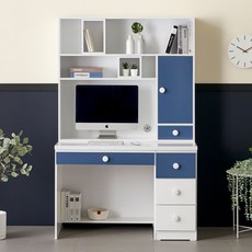 꼼므 1200 아이책상의자세트(화이트 베이지), 화이트책상+블루의자2