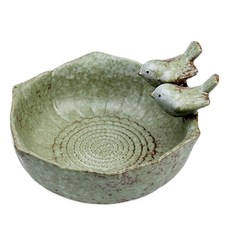 세라믹 새 목욕 새 지류 동상 만화 수공예품 야외 장식 선물, 초록, 15x15x7.5cm