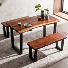 [삼익가구]에디 로즈우드 우드슬랩 4인용 식탁 세트(벤치1개포함), 브라운