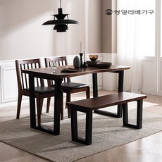 상일리베가구 레인트리 우드슬랩 식탁 4인세트 (벤치1 의자2), 엔틱브라운