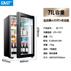 SAST100L 미니 소형 냉장고 투명 잠금 스 바 차 음료 냉장 신선 유지 캐비닛 사무실 홈, 71L 블랙 아이스바 잠금 장치와 조명이 완전히