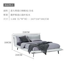 이탈리안 피우마 침대 가벼운 럭셔리 모던하고 심플한 마스터 침실 더블침대 웨딩침대 부드러운 가죽침대 이탈리안 미니멀리즘, 다른, 이탈리아 수입 나파가죽풀가죽1.8m, 뼈대