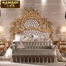 유럽 스타일의 럭셔리 큰 침대 프랑스 궁전 고귀한 침대 이탈리아 왕실 웨딩 침대 럭셔리 더블 침대 단단한 나무 조각 침대, 1800mm2000mm, 침대60일 이내 배송, 뼈대
