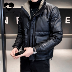 겨울남자패딩 리얼가죽 다운 코트 남성 가죽옷 퀄리티 풀솜 양가죽재킷 통가죽 두꺼운 순피 숏 소프트레더