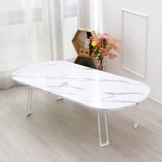벨라홈 LPM 샤르망 타원형 접이식테이블 1200 x 600 mm, 마블화이트