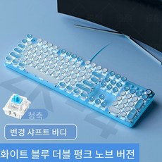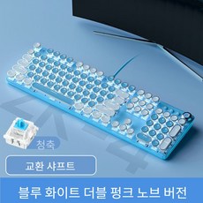 Jtengsys 기계식 키보드 핑크 소녀 레트로 전기 도금 펑크 그린 축 게임 스핀 버튼 유선 컴퓨터 노트북 유니버설, 파란색 스티칭 흰색