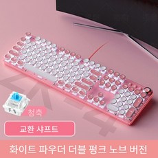 Jtengsys 기계식 키보드 핑크 소녀 레트로 전기 도금 펑크 그린 축 게임 스핀 버튼 유선 컴퓨터 노트북 유니버설, 흰색 스티칭 블루