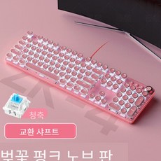 Jtengsys 기계식 키보드 핑크 소녀 레트로 전기 도금 펑크 그린 축 게임 스핀 버튼 유선 컴퓨터 노트북 유니버설, 벚꽃 가루