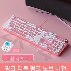 Jtengsys 기계식 키보드 핑크 소녀 레트로 전기 도금 펑크 그린 축 게임 스핀 버튼 유선 컴퓨터 노트북 유니버설, 핑크 스티칭 흰색