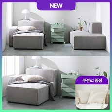뮤즈 패브릭 2인용쇼파 스툴포함, 좌형 라이트그레이