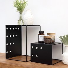 모듈선반 철제 스토리지 랙 미니 진열대 경량랙 정리대 ㄷ자 다용도 2단 선반, 블랙-스몰