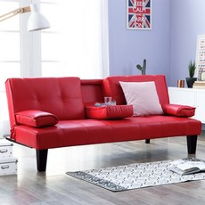 베스트리빙 [리퍼상품] 카푸치노 접이식 컵홀더 소파 겸 침대/소파베드/가죽소파/2인용 소파/소파침대/침대/가죽침대/쿠션2개, 레드