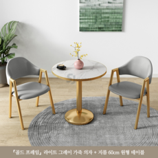 티 테이블 세트 원형 2인용 세라믹 식탁 베란다 발코니 카페, 라이트그레이(골드원탁60CM+의자2)