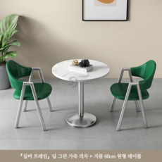 티 테이블 세트 원형 2인용 세라믹 식탁 베란다 발코니 카페, 딥그린(실버세라믹원탁60CM+의자2)