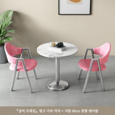 티 테이블 세트 원형 2인용 세라믹 식탁 베란다 발코니 카페, 핑크(실버세라믹원탁60CM+의자2)