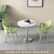 티 테이블 세트 원형 2인용 세라믹 식탁 베란다 발코니 카페, 라이트그린(실버세라믹원탁60CM+의자2)