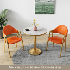 티 테이블 세트 원형 2인용 세라믹 식탁 베란다 발코니 카페, 오렌지(골드세라믹원탁60CM+의자2)