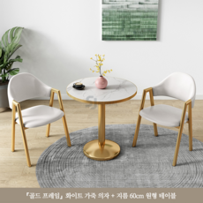 티 테이블 세트 원형 2인용 세라믹 식탁 베란다 발코니 카페, 화이트(골드세라믹원탁60CM+의자2)