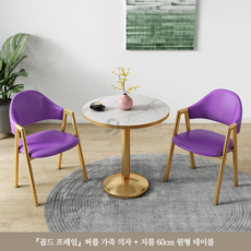 티 테이블 세트 원형 2인용 세라믹 식탁 베란다 발코니 카페, 딥퍼플(골드세라믹원탁60CM+의자2)