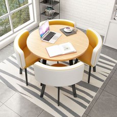 대리석 원형 4인용 테이블 세트 거실 라운지식탁 홈카페 실내인테리어, J