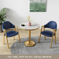 티 테이블 세트 원형 2인용 세라믹 식탁 베란다 발코니 카페, 네이비(골드세라믹원탁60CM+의자2)