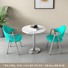 티 테이블 세트 원형 2인용 세라믹 식탁 베란다 발코니 카페, 라이트스카이(실버세라믹원탁60CM+의자2)