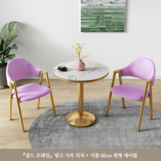 티 테이블 세트 원형 2인용 세라믹 식탁 베란다 발코니 카페, 퍼플핑크(골드세라믹원탁60CM+의자2)