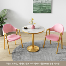 티 테이블 세트 원형 2인용 세라믹 식탁 베란다 발코니 카페, 라이트핑크(골드세라믹원탁60CM+의자2)