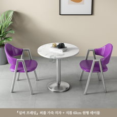 티 테이블 세트 원형 2인용 세라믹 식탁 베란다 발코니 카페, 퍼플(실버세라믹원탁60CM+의자2)