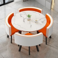 북유럽 대리석 테이블세트 원형 4인용 식탁 가죽 의자 패브릭, F